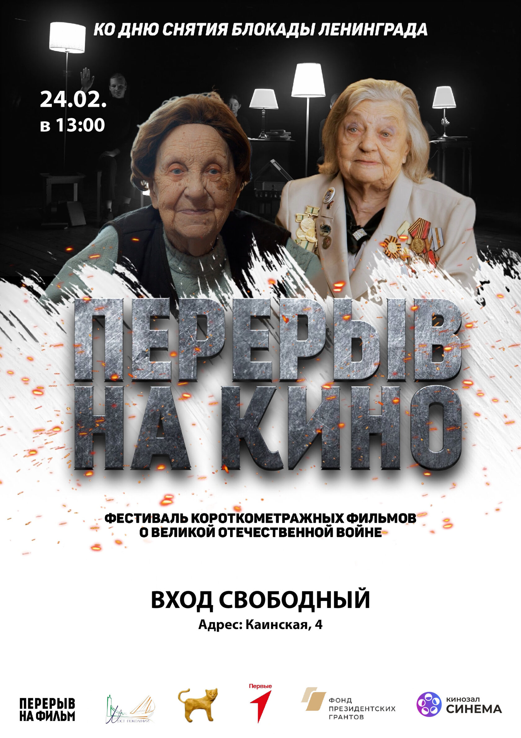 24 февраля в 13:00 наш кинозал «Синема» присоединится к масштабной акции. У нас пройдёт Всероссийский показ фильмов военно-исторического фестиваля «Перерыв на кино».